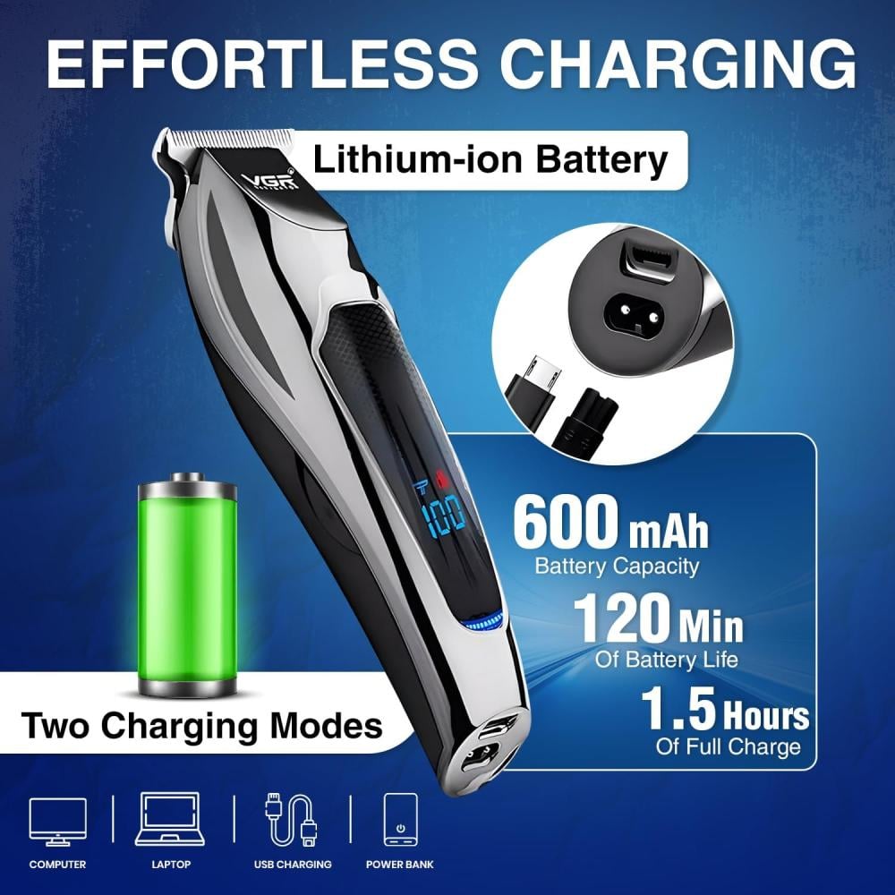 ماكينة تشذيب شعر احترافية، مدة التشغيل 120 دقيقة، ماكينة حلاقة للرجال (أسود)