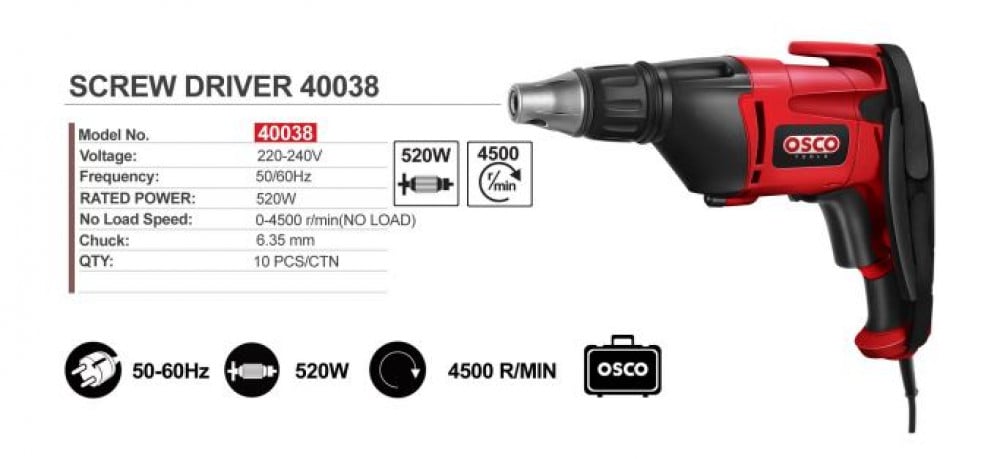 OSCO Screw Driver 520W 4500rpm Hex 6mm